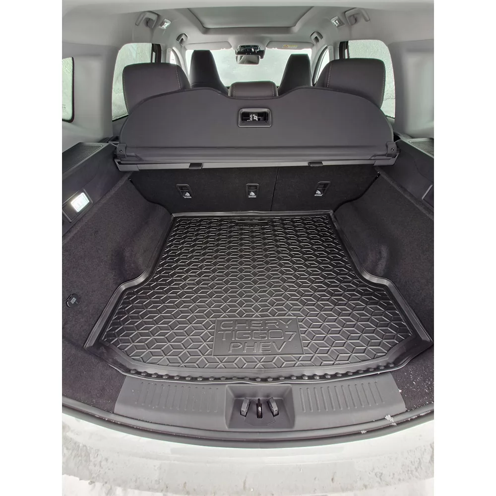 Поліуретанові килимки багажнику спеціально розроблені для моделі CHERY Tiggo 7 (PHEV) (2023-). Вони ідеально відповідають