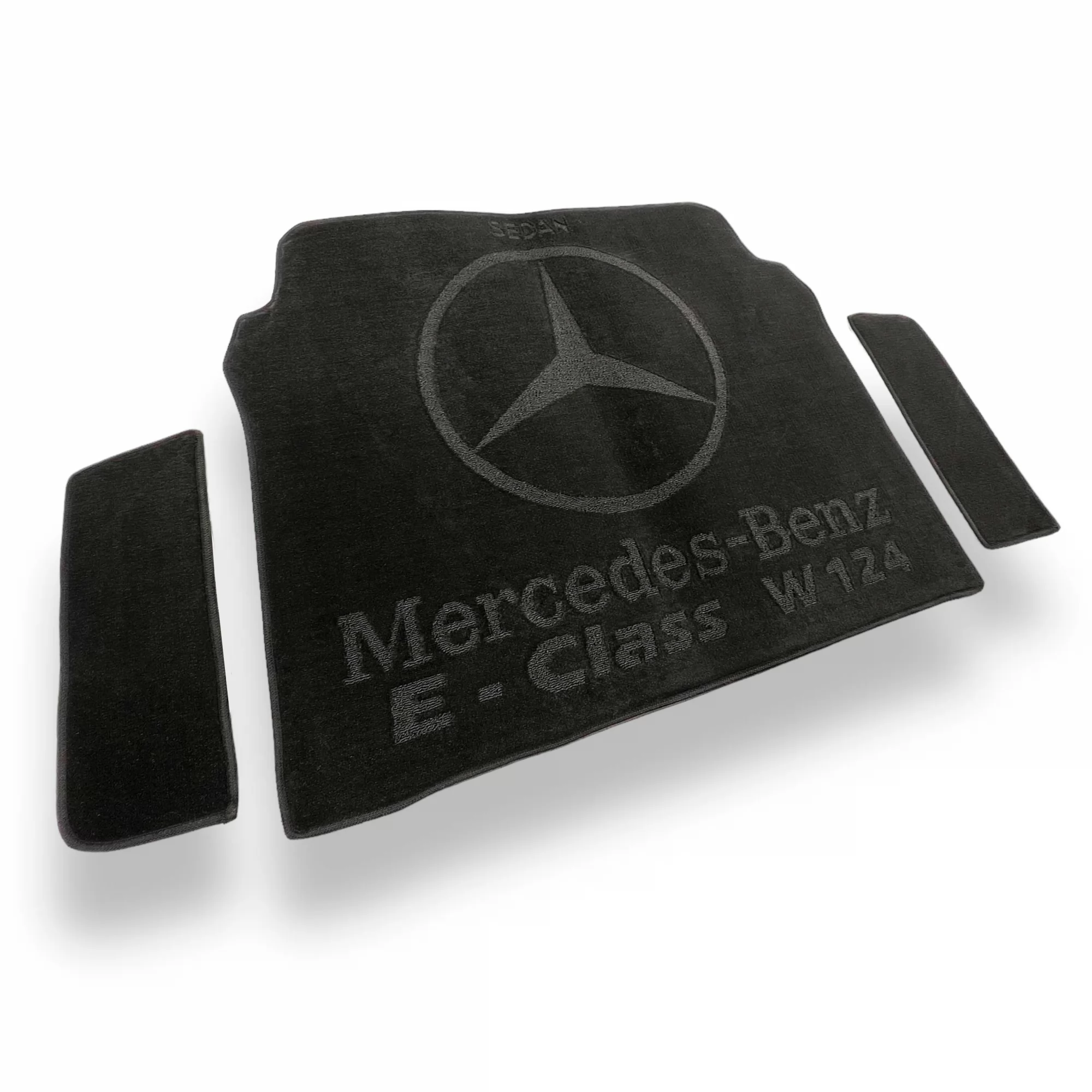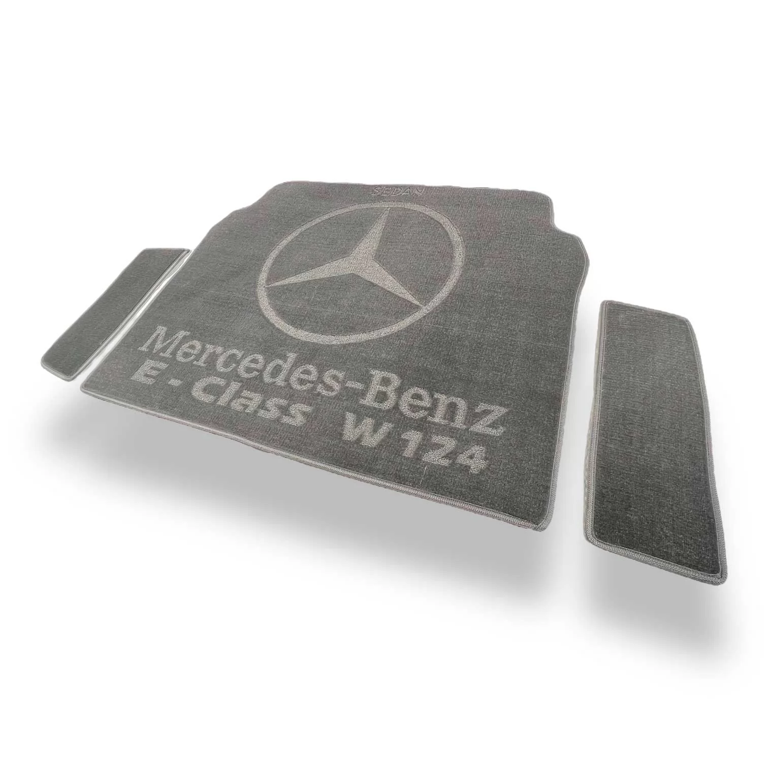 The design of Avto-Tex textile (pile) trunk mats provides maximum floor coverage, namely MERCEDES E - class (W124) (1984-1995), reliable fastening (which eliminates slipping), durability and wear resistance.