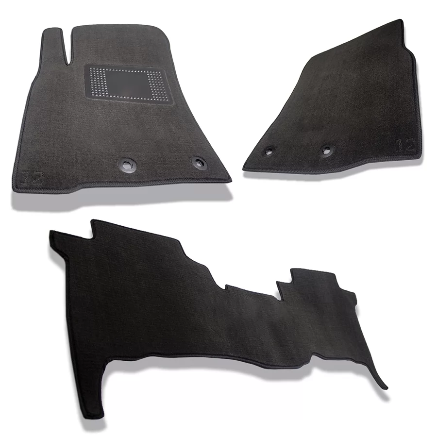 By taking into account the geometry of the floor of a specific car model, the mats are firmly fixed and do not slip. Additionally, plastic retainers are used.