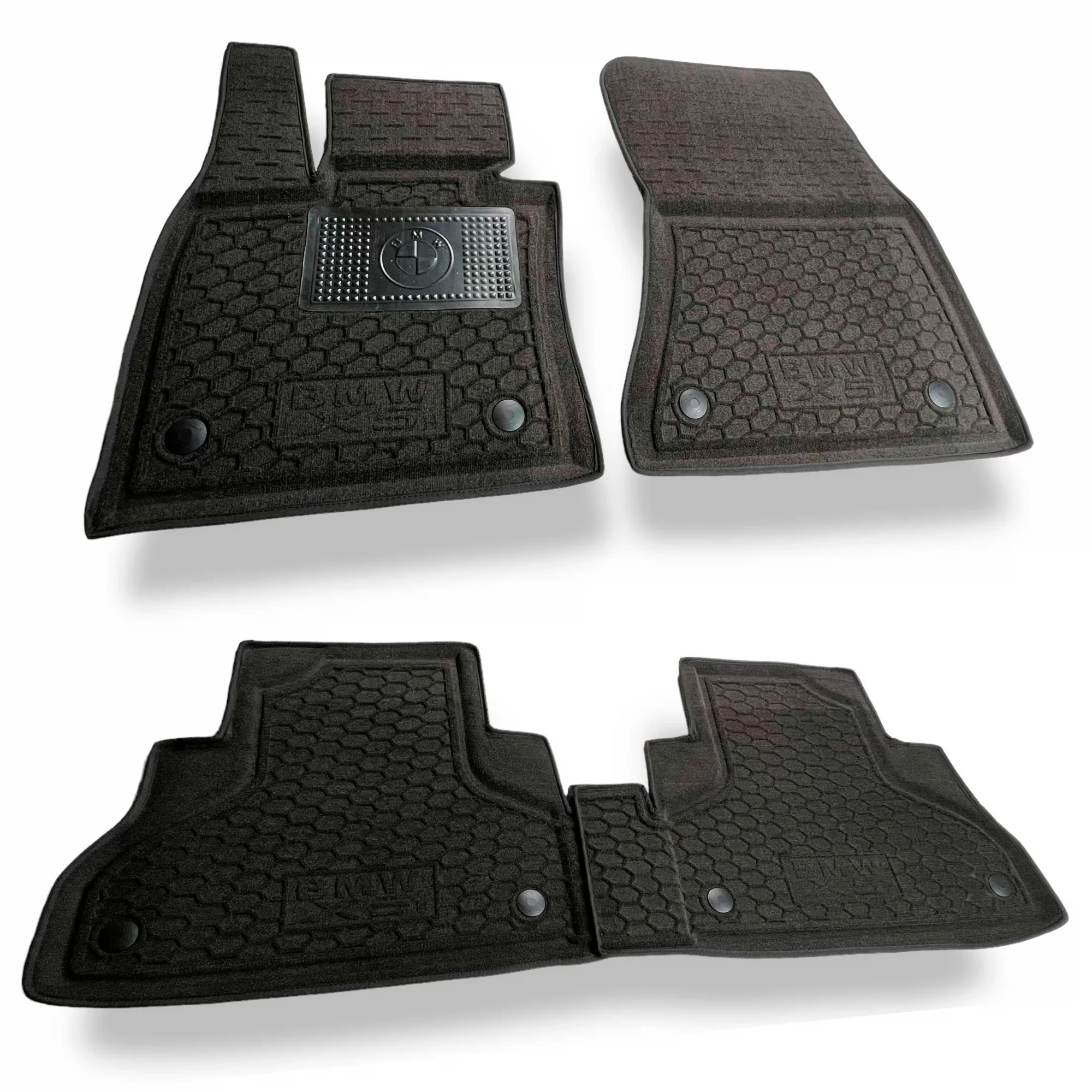 Гібридні килимки Avto-Gumm - це преміальні сучасні автомобільні килимки, які не мають наразі повних аналогів, які б могли перевершити їх за експлуатаційними та естетичними характеристиками одночасно. При цьому максимально чітко і в повному обсязі повторюючи форму підлоги вашого автомобіля BMW X-5 F15 (2015>)