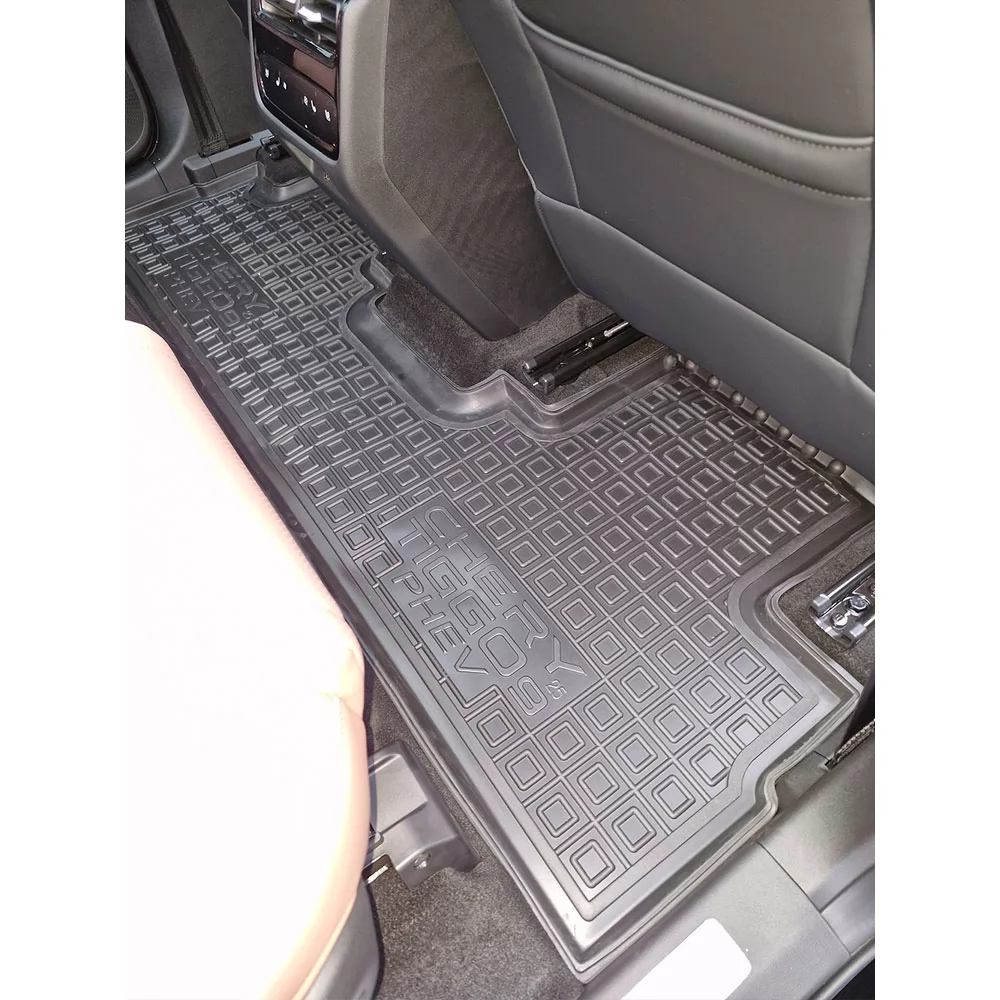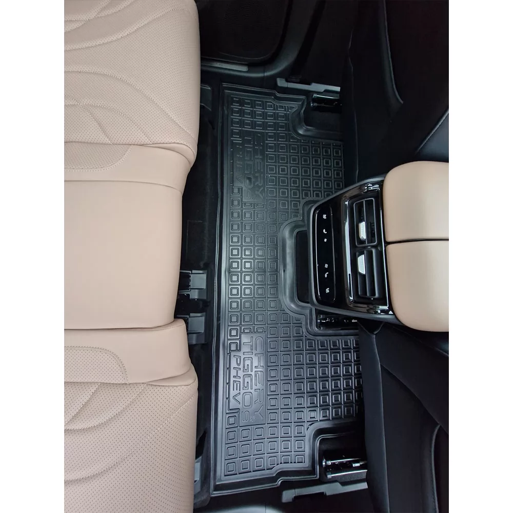 Поліуретанові килимки салону спеціально розроблені для моделі CHERY Tiggo 9 PHEV (7 місць). Вони ідеально відповідають