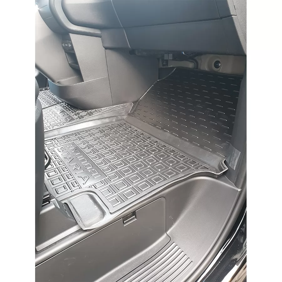 Поліуретанові килимки салону спеціально розроблені для моделі HYUNDAI Staria (2021). Вони ідеально відповідають контурам підлоги, що гарантує щільну посадку та ефективний захист салону від бруду, пилу та вологи.